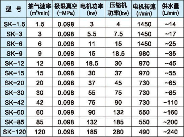 SK水環(huán)真空泵系列技術(shù)參數(shù)